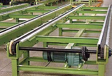 - 链条输送机是以链条作为牵引和承载体输送物料,链条可以采用普通的套筒滚子输送链,也可采用其它各种特种链条(如积放链,倍速链)。