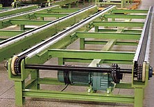 - 链条输送机是在承载链条上,可以直接用链条作为输送载体或者每节链条之间再加上一较高的承载滚子附件来承载货物。