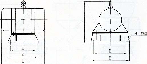 ZFB防闭塞装置的结构如图1所示。由振动电机(1)、底座(2)两部分组成。振动电机和底座由螺栓紧密地固定为一体,由于底座坚固地安装在料仓壁上,这样就构成了单质点定向强迫振动系统。 当ZFB系列防闭塞装置工作时,振动电机的高速转动,便产生了对料仓壁的周期性高频振动,由于防闭塞装置的周期性振动,一方面使物料与仓壁脱离接触、消除物料与仓壁的摩擦,另一方面使物料受交变速度和加速度的影响,处于不稳定状态,从而有效地克服物料的内摩擦力和聚集力,以消除料仓内物料间的相对稳定性,使物料从料仓口顺利排出。