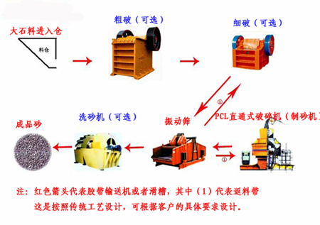 - 制砂机生产线设备(制砂生产线设备)通常由振动给料机、颚式破碎机、直通冲击式破碎机(制砂机)、振动筛、洗砂机、胶带输送机、集中电控等设备组成。