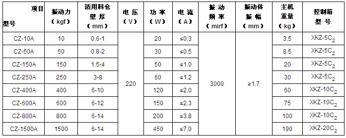 注:表中适用料仓壁厚仅供参考,具体选型则需根据料仓形状及物料情况决定。