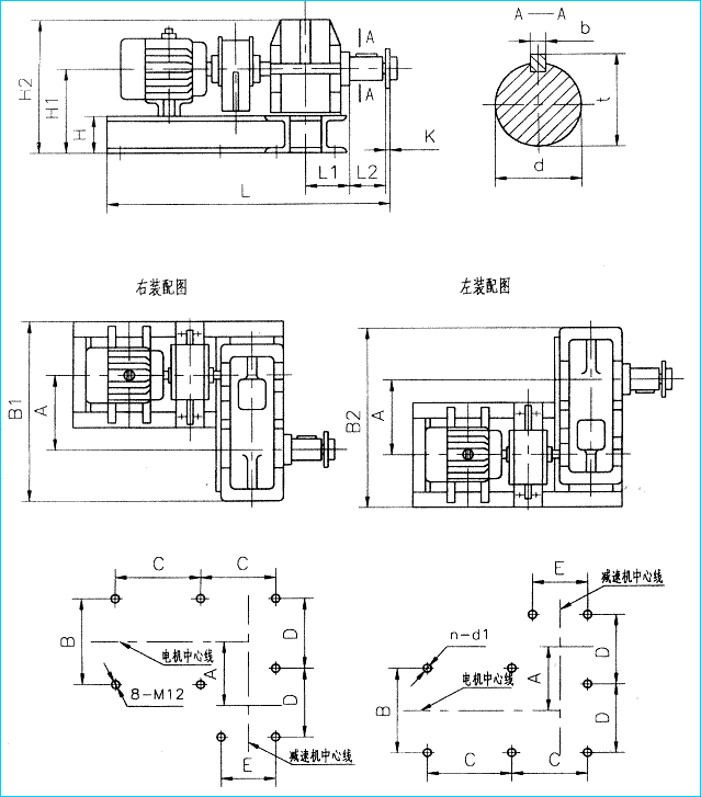 右装一站在电动机尾部向前看,减速器低速轴在电动机的右侧。