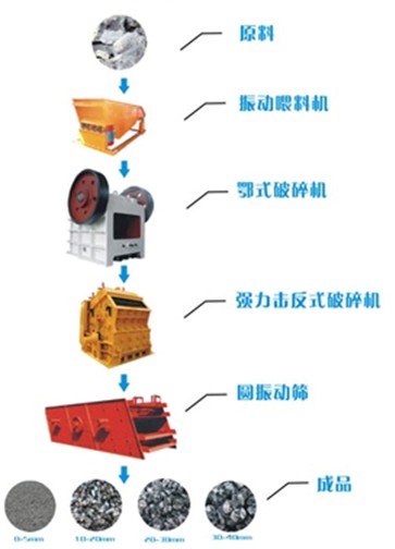 - 破碎机生产线由给料机、颚式破碎机、液压圆锥破碎机、振动筛、立式冲击破碎机等主要设备组成,配合皮带输送机等可组成完整的石料生产线。