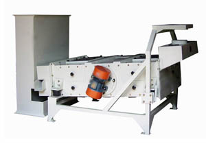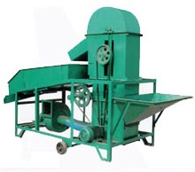 清理筛在物料从进料口喂入筛筒后,受旋转打板的冲击和输送作用,使物料中的结团物料被打散,并与打板一起绕筒内表面作圆周运动,在离心力的作用下,小于筛孔的物料迅速过筛,从机体下部排出机外,紧贴筛筒的清扫刷随时把挂在筛筒上的物料扫除。大于筛孔的大杂则在打板的输送作用下,向大杂出口方向推移而排出。